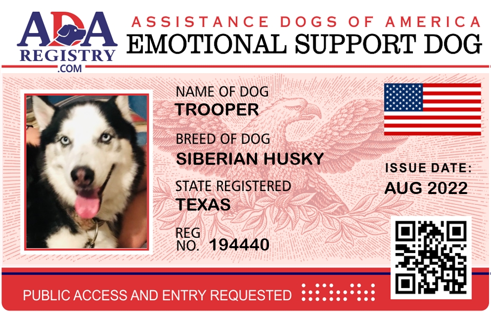 Emotional Support Dog Registration for Trooper