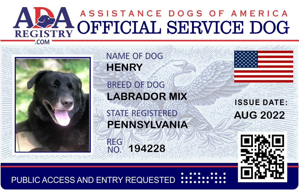 Service Dog Registration for Henry