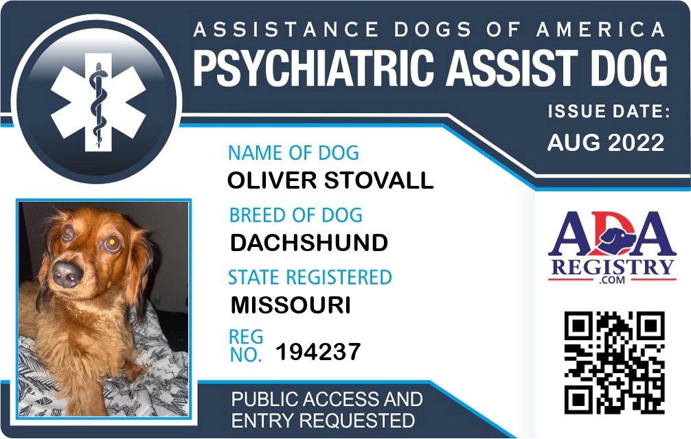 Psychiatric Service Dog Registration for Oliver Stovall