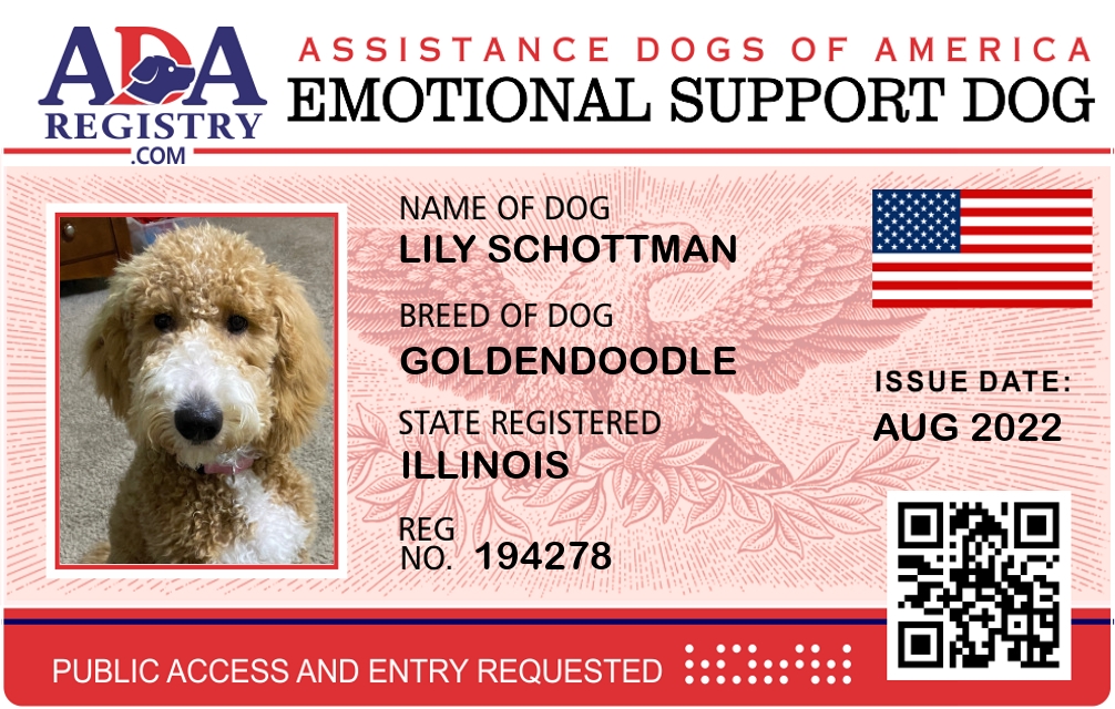 Emotional Support Dog Registration for Lily Schottman