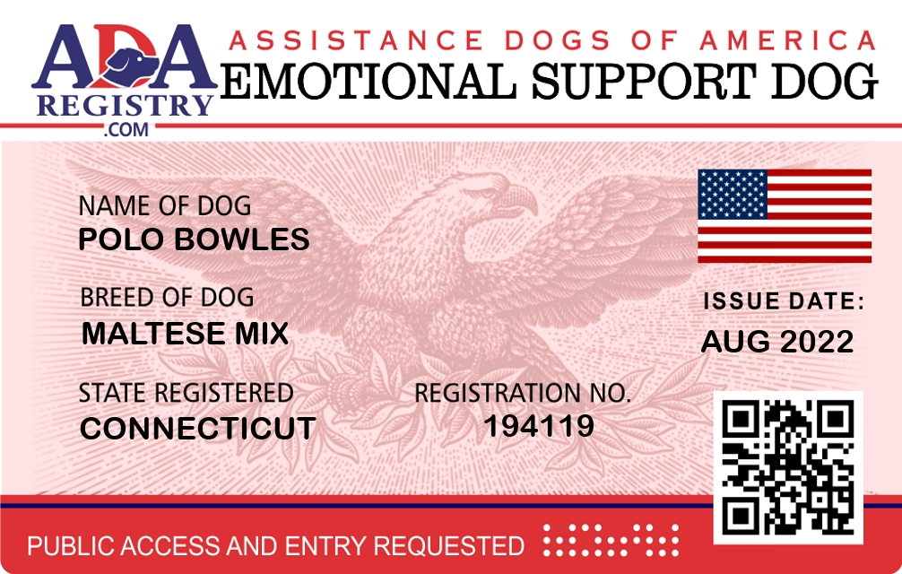 Emotional Support Dog Registration for Polo Bowles