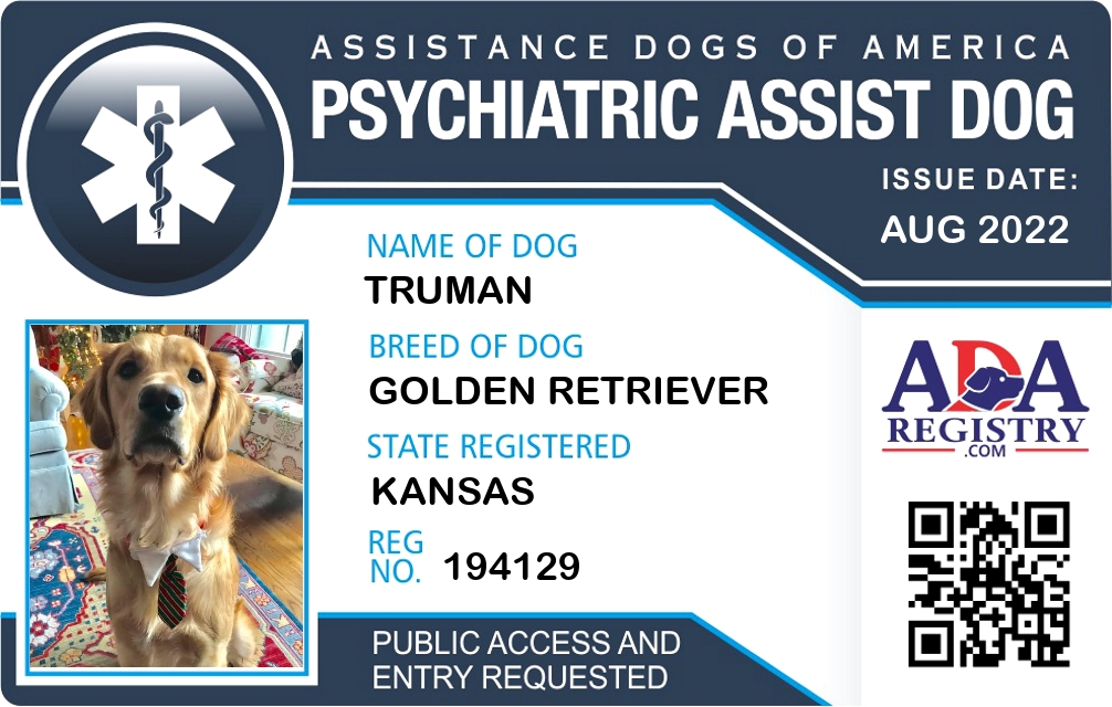 Psychiatric Service Dog Registration for Truman