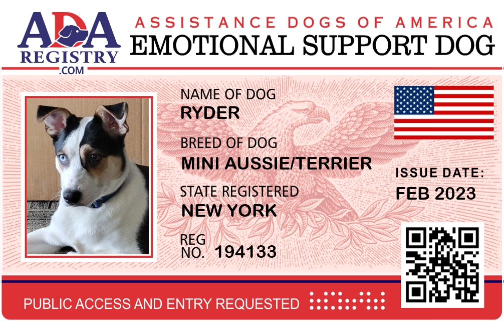 Emotional Support Dog Registration for Ryder