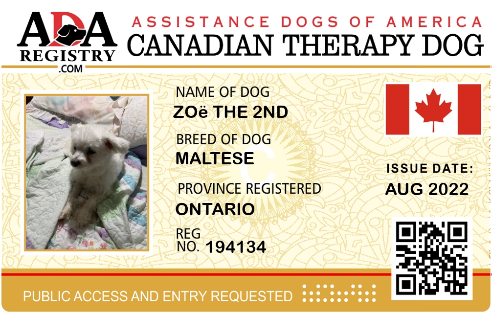 Therapy Dog Registration for Zoë the 2nd