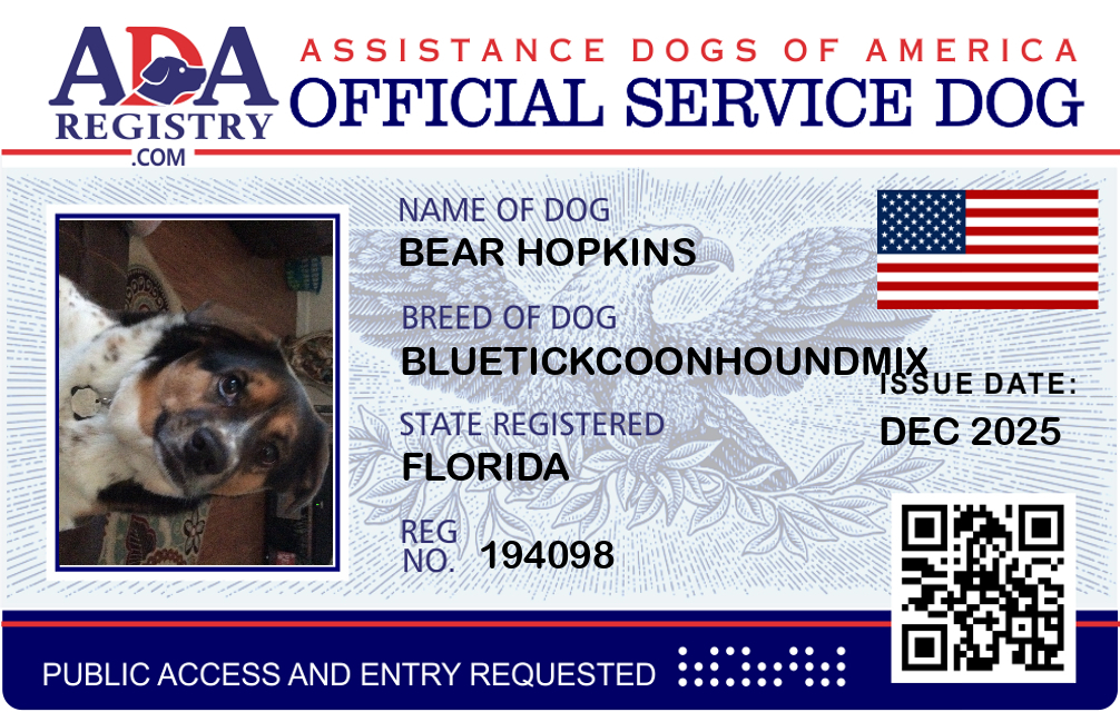Bear is Blue Tick Coonhound Beagle mix, hes 5 years old. He helps my son Christopher J Hopkins. He has a traumatic brain injury.