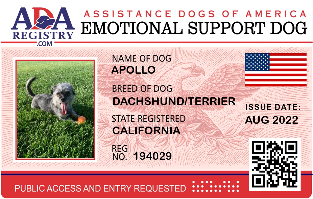 Emotional Support Dog Registration for Apollo