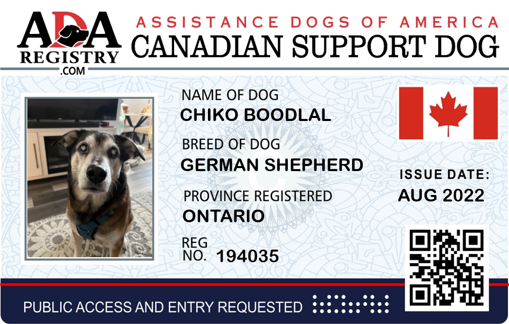 Emotional Support Dog Registration for chiko boodlal