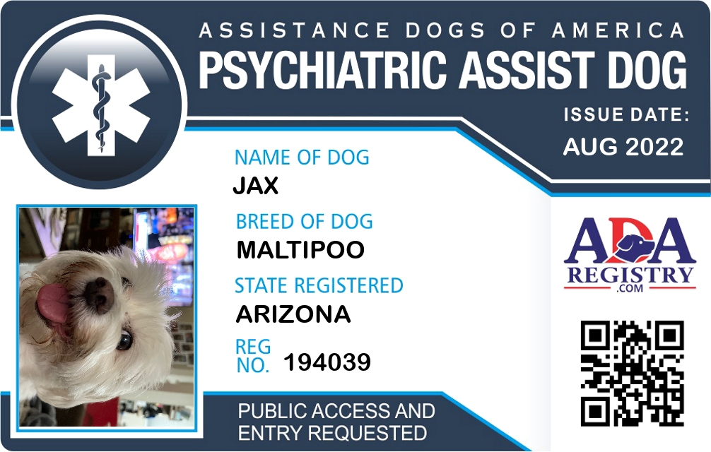 Psychiatric Service Dog Registration for Jax