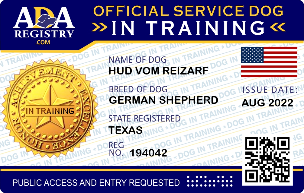 Service Dog In Training Registration for Hud Vom Reizarf