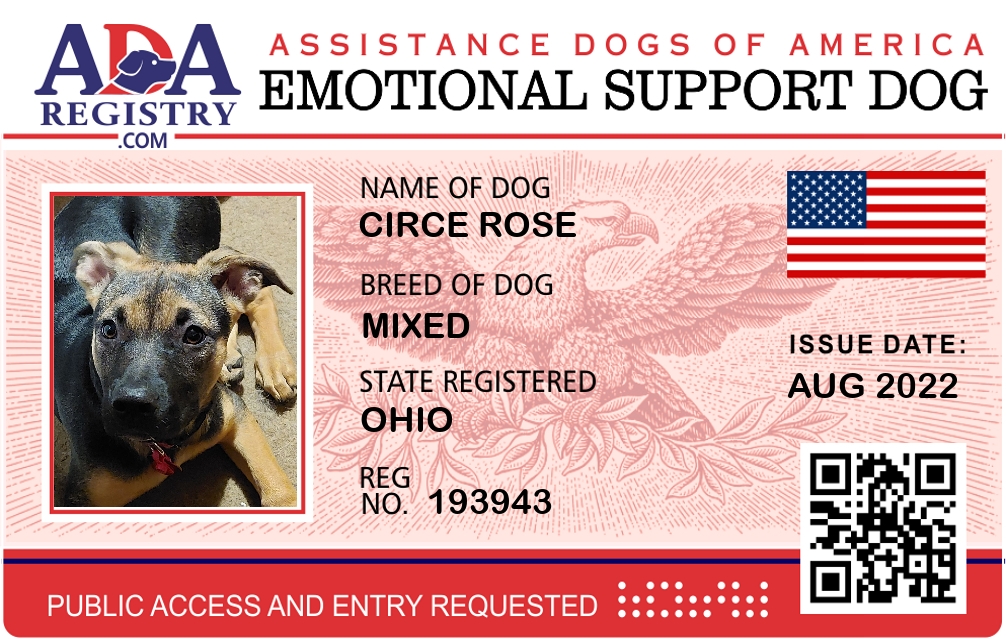 Emotional Support Dog Registration for Circe Rose