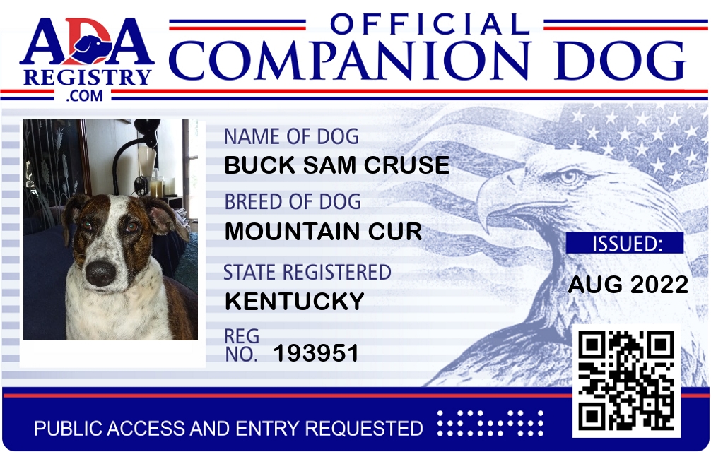 Companion Dog Registration for Buck Sam Cruse