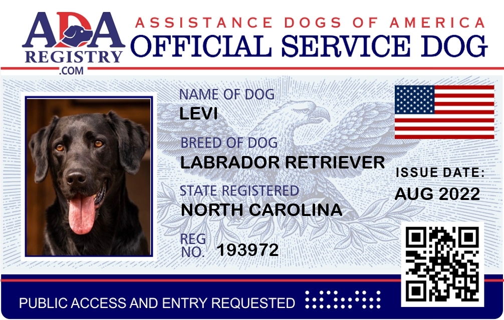 Service Dog Registration for Levi