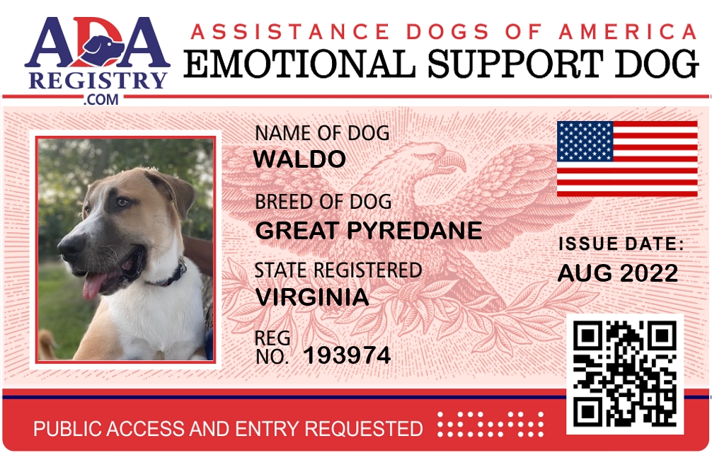 Emotional Support Dog Registration for Waldo