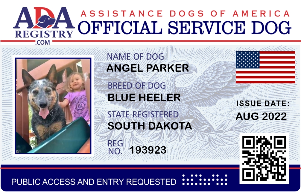 Service Dog Registration for Angel Parker