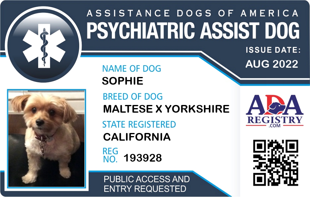 Psychiatric Service Dog Registration for Sophie