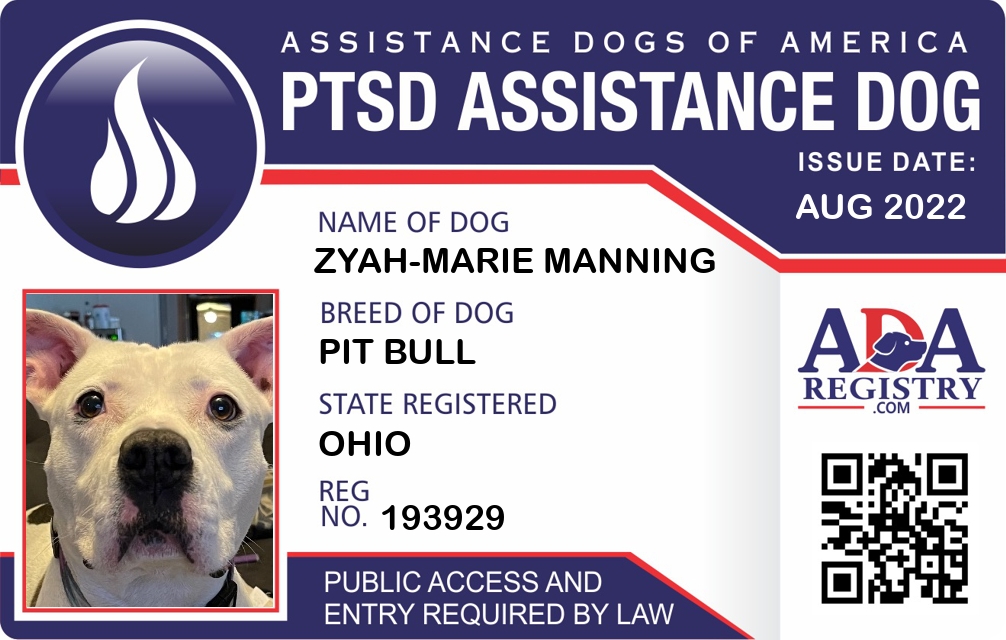 PTSD Assistance Dog Registration for Zyah-Marie Manning