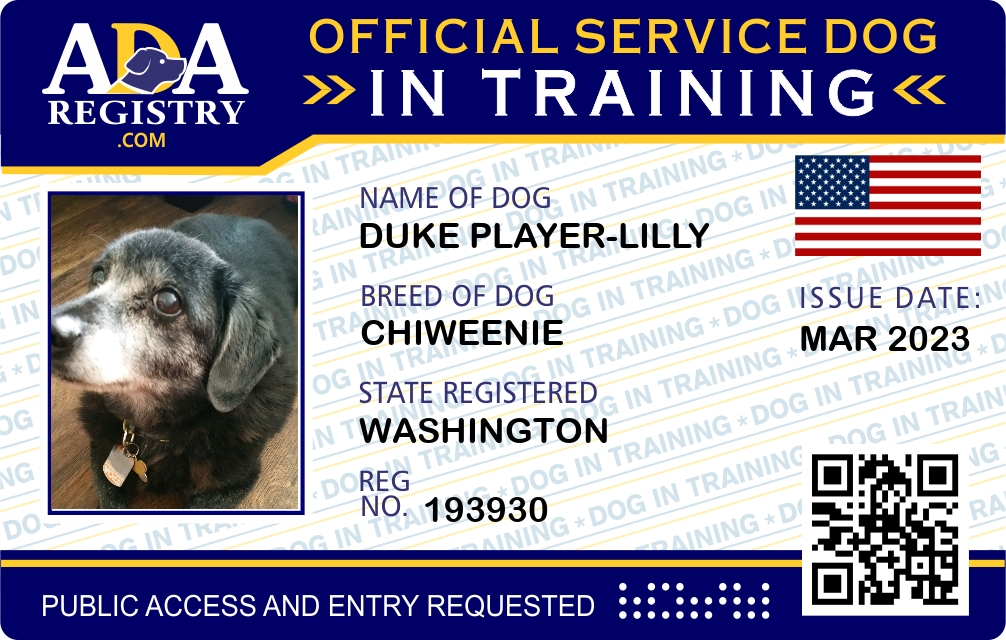 Service Dog In Training Registration for Duke Player-Lilly