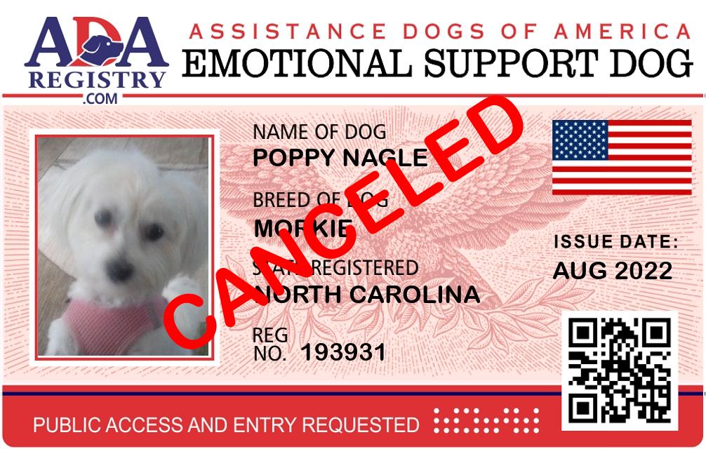 Emotional Support Dog Registration for Amber Darling Barker