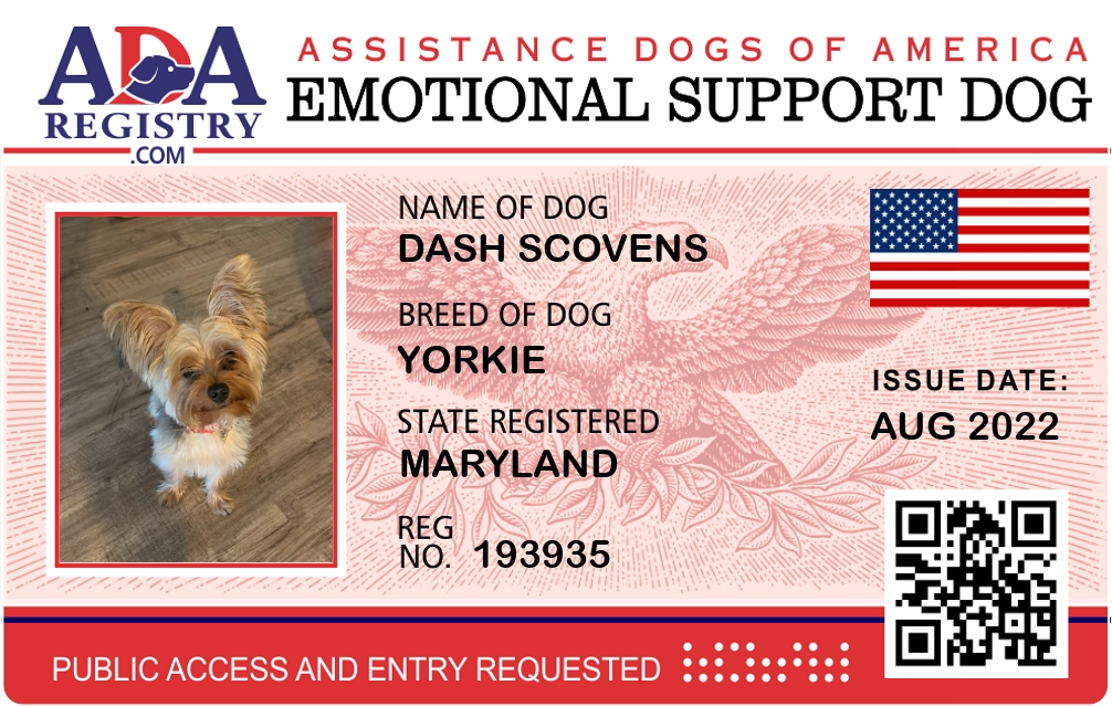 Emotional Support Dog Registration for Dash Scovens