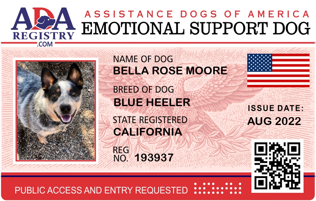 Emotional Support Dog Registration for Bella Rose Moore