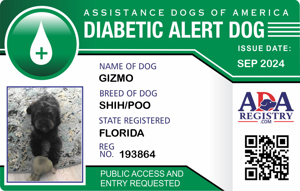 Diabetic Alert Dog Registration for Gizmo