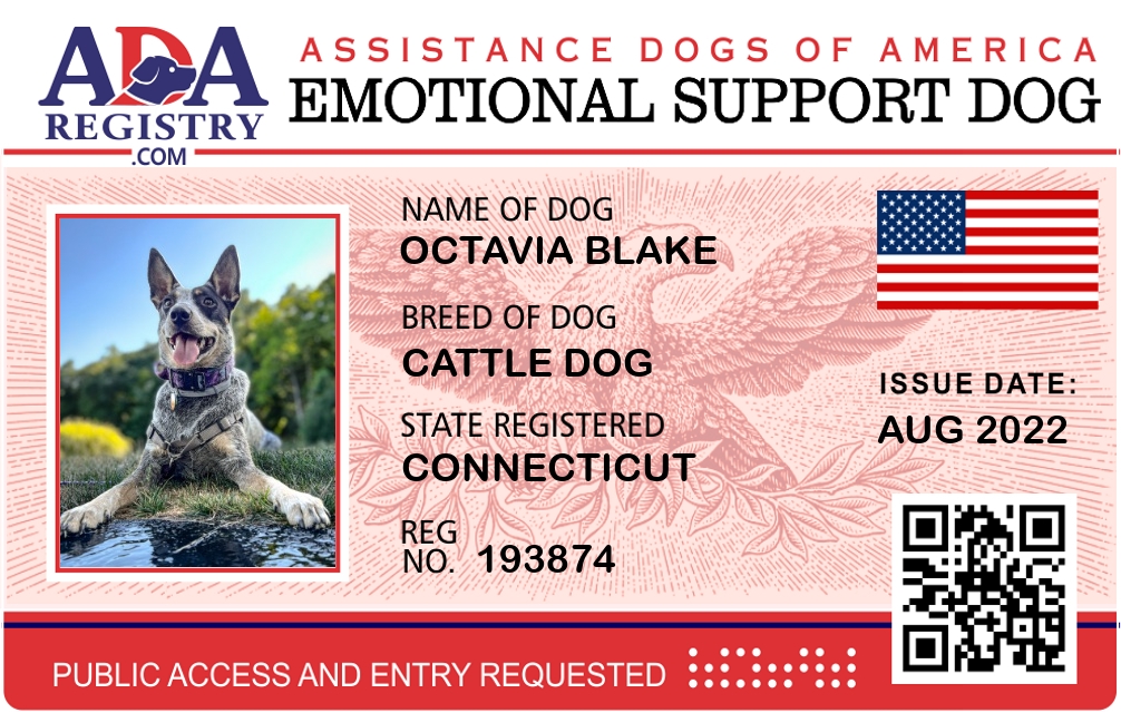 Emotional Support Dog Registration for Octavia Blake