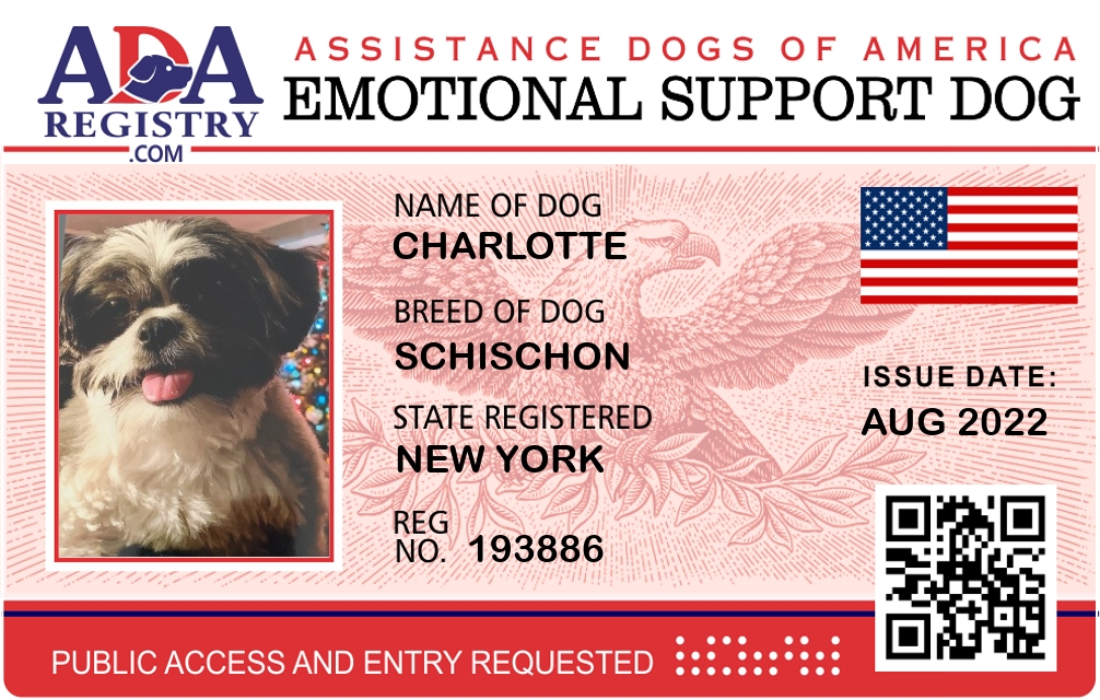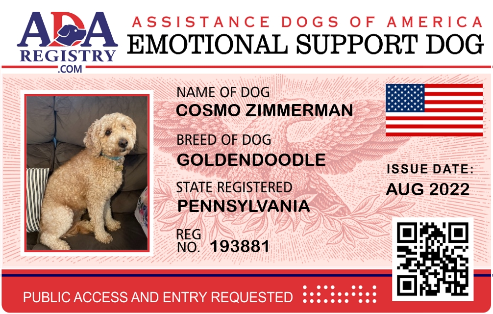 Emotional Support Dog Registration for Cosmo Zimmerman