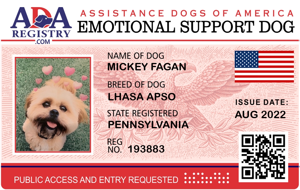 Emotional Support Dog Registration for Mickey Fagan