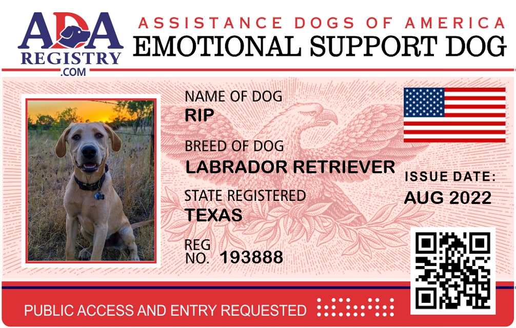 Emotional Support Dog Registration for Rip