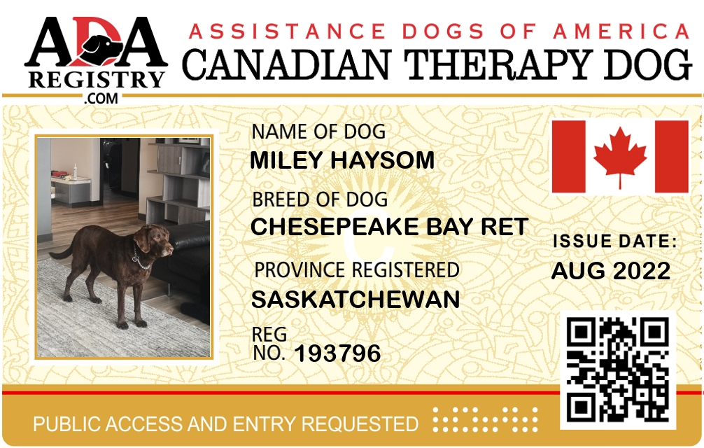 Therapy Dog Registration for Miley Haysom