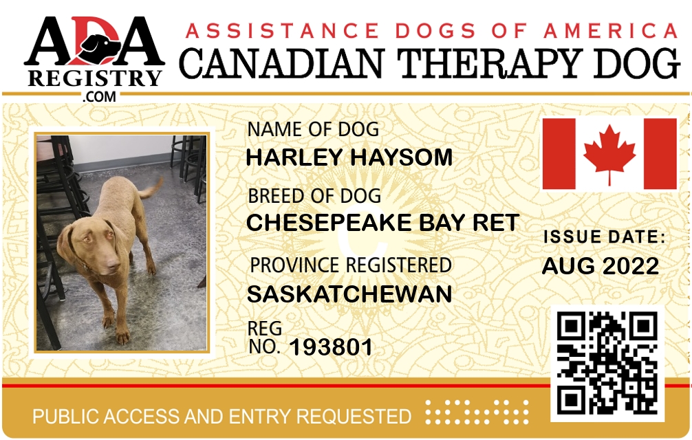 Therapy Dog Registration for Harley Haysom