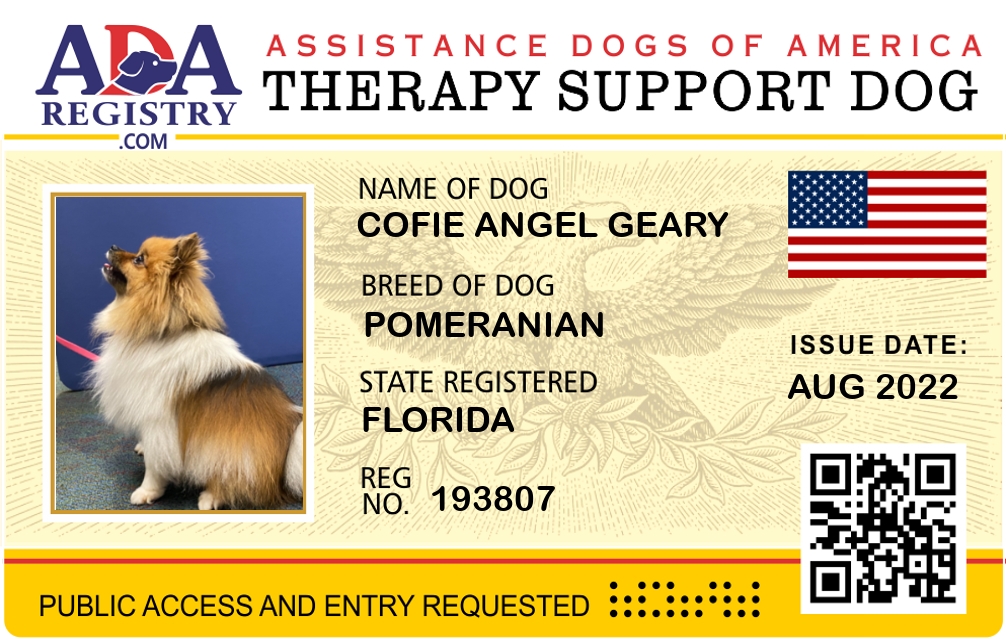 Therapy Dog Registration for Cofie Angel Geary