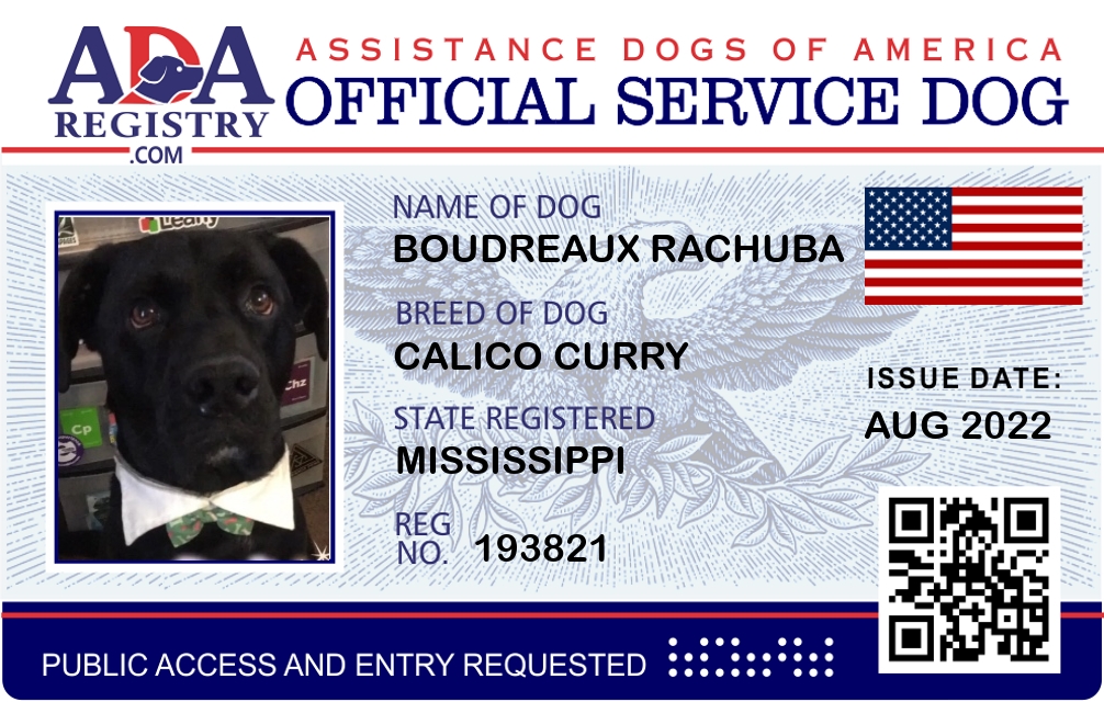 Service Dog Registration for Boudreaux Rachuba