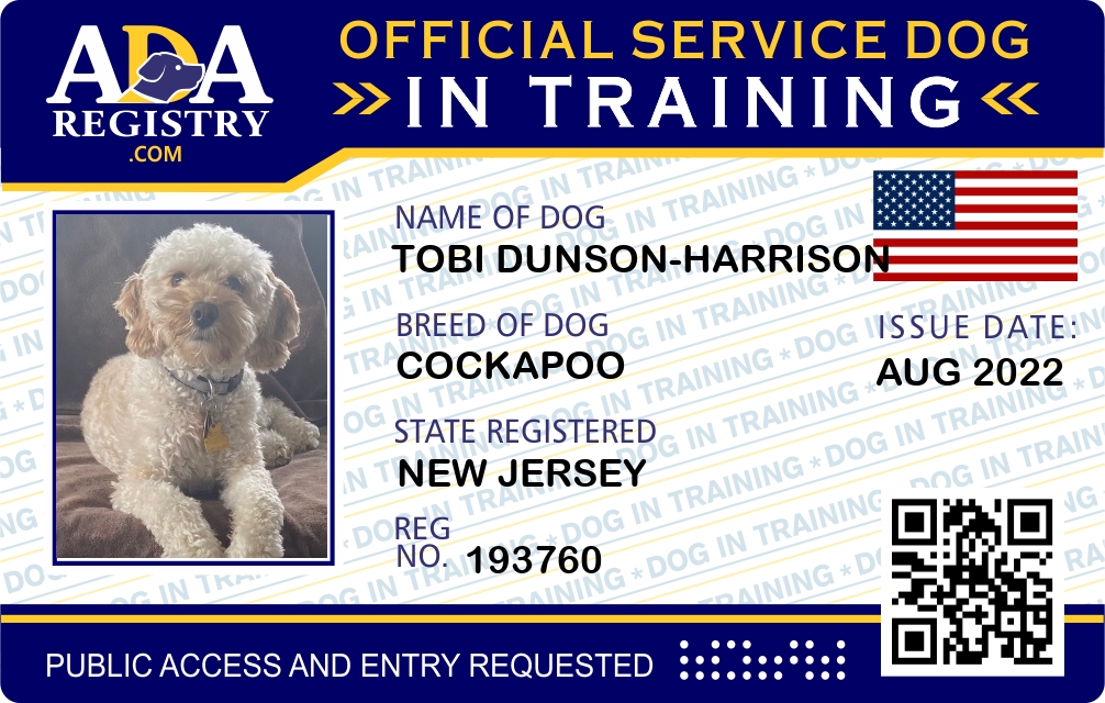 Service Dog In Training Registration for Tobi Dunson-Harrison