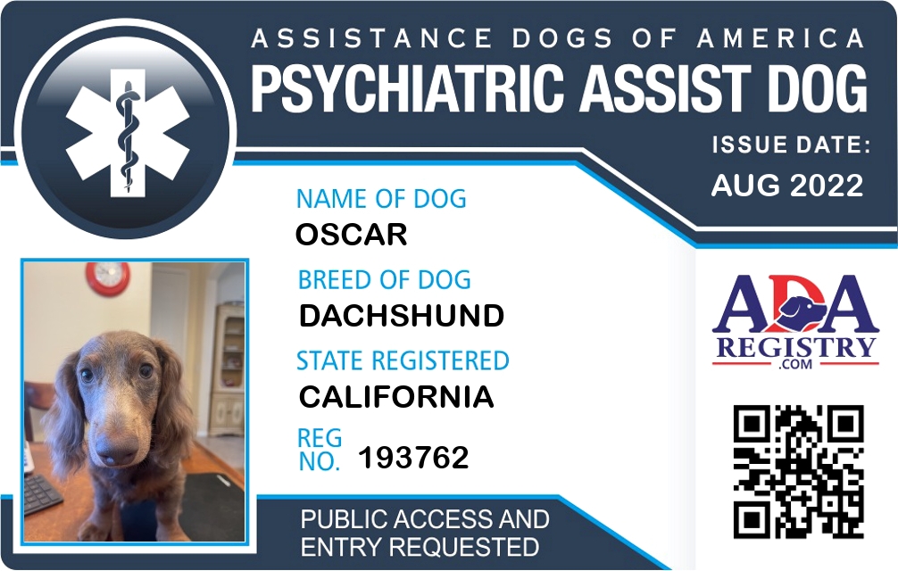 Psychiatric Service Dog Registration for Oscar