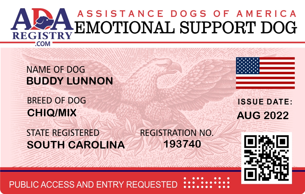 Emotional Support Dog Registration for Buddy Lunnnon