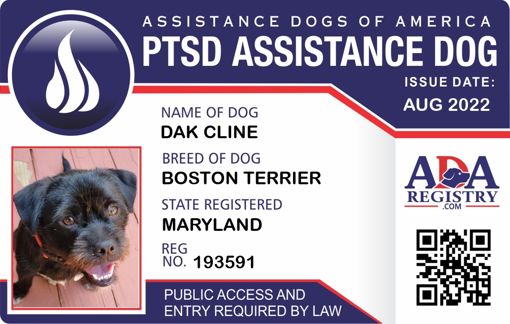 PTSD Assistance Dog Registration for Dak Cline