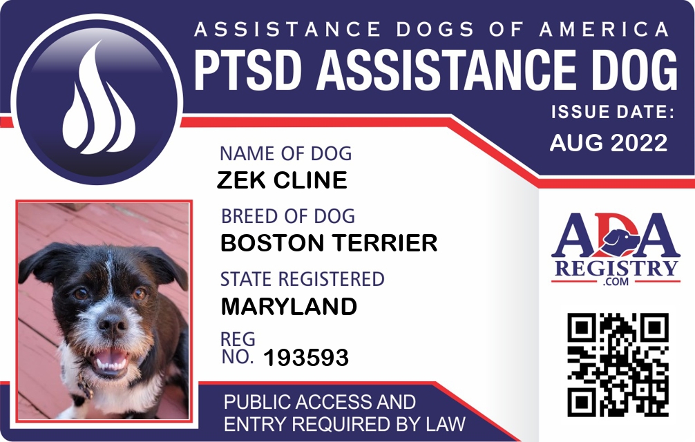 PTSD Assistance Dog Registration for Zek Cline