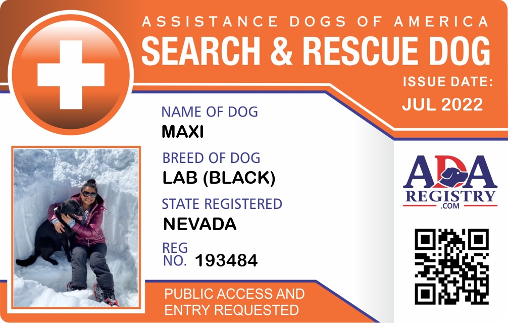 Search And Rescue Dog Registration for Maxi