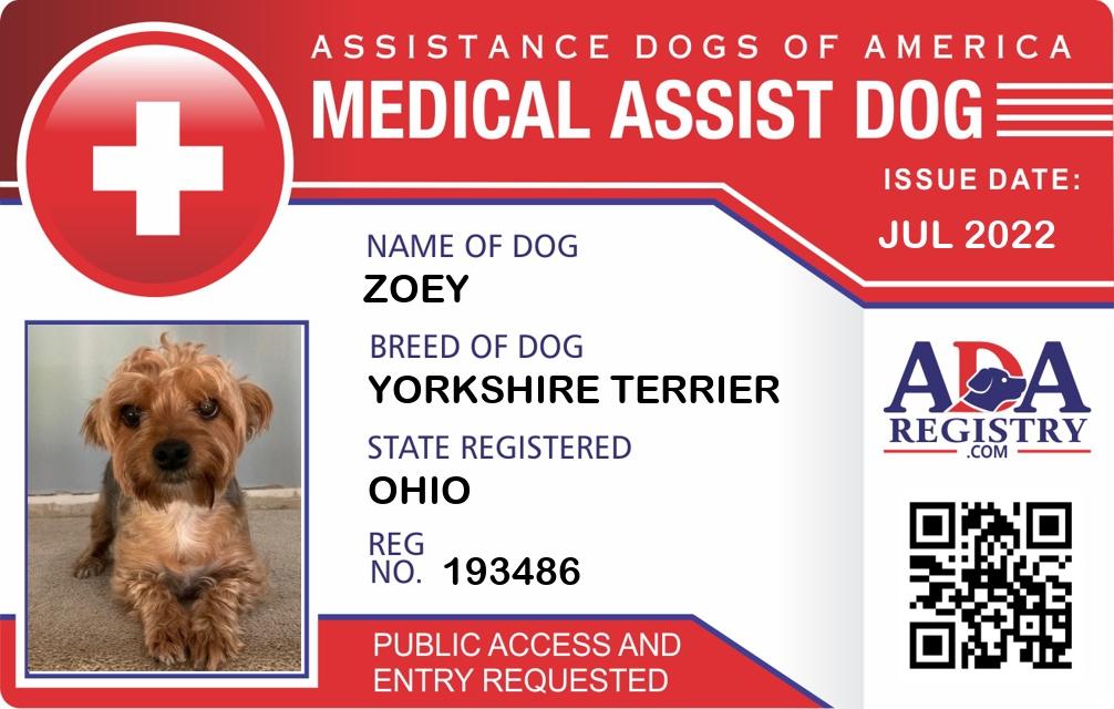 Medical Assistance Dog Registration for Zoey