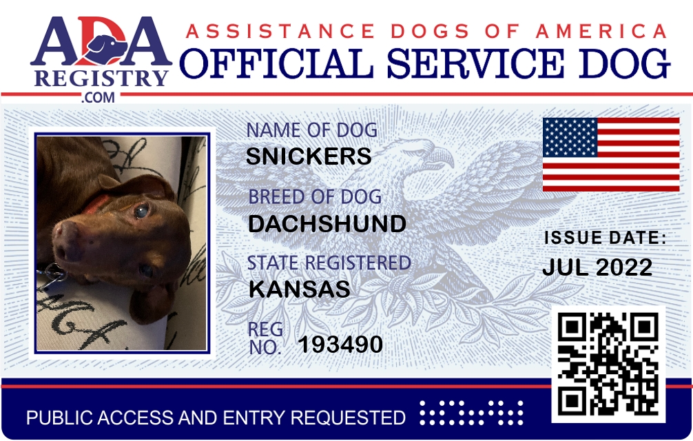 Service Dog Registration for Snickers