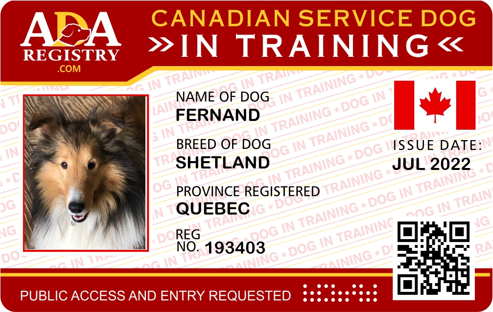 Service Dog In Training Registration for Fernand