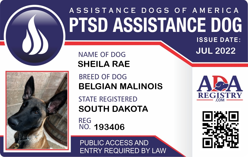 PTSD Assistance Dog Registration for Sheila Rae