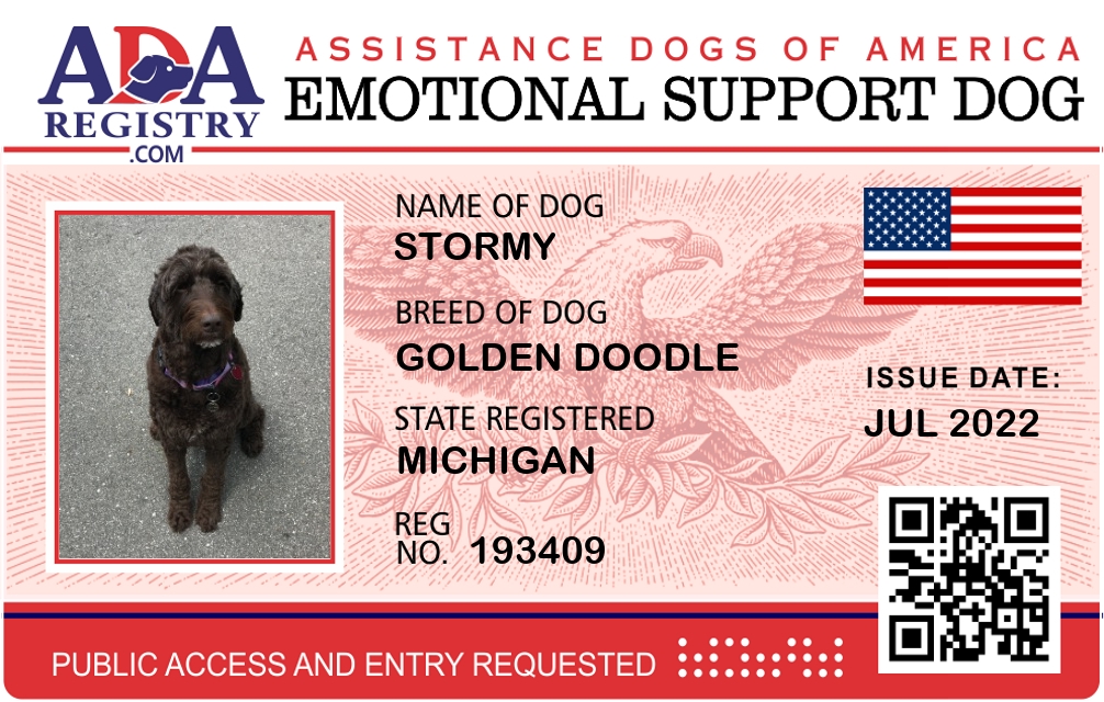 Emotional Support Dog Registration for Stormy