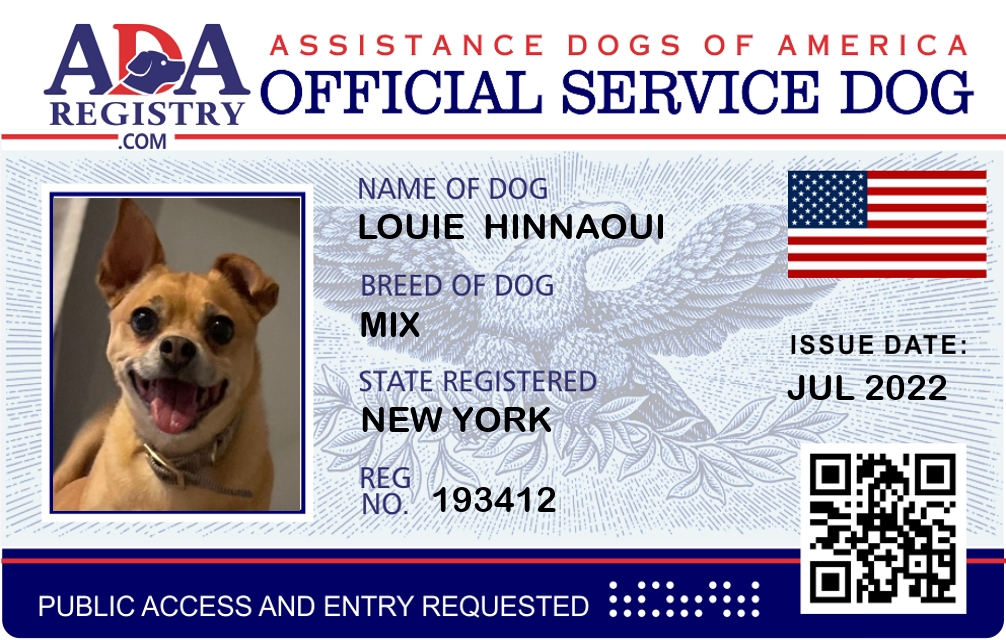 Service Dog Registration for Louie Hinnaoui