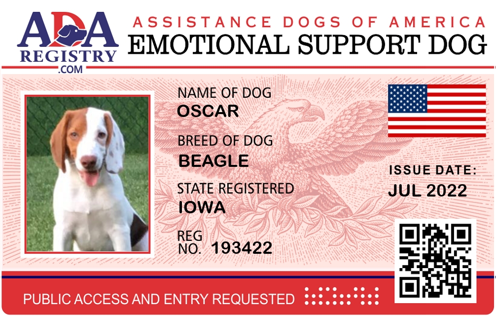 Emotional Support Dog Registration for Oscar