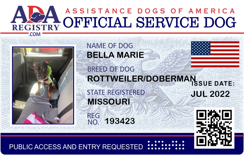 Service Dog Registration for Bella Marie