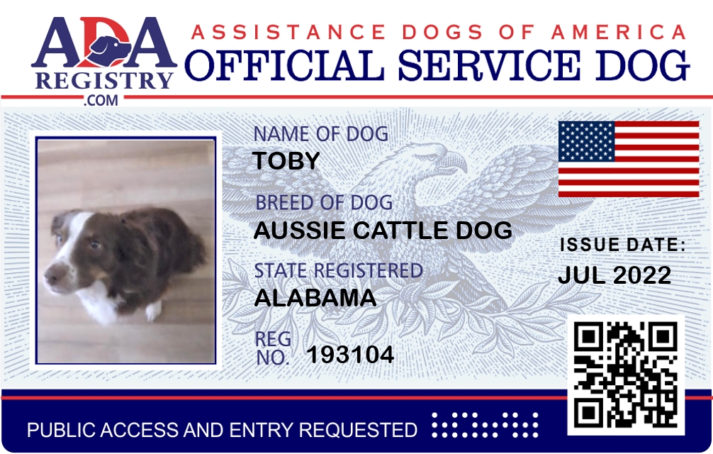 Service Dog Registration for Toby
