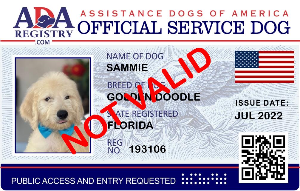 Service Dog Registration for Sammie Anthony