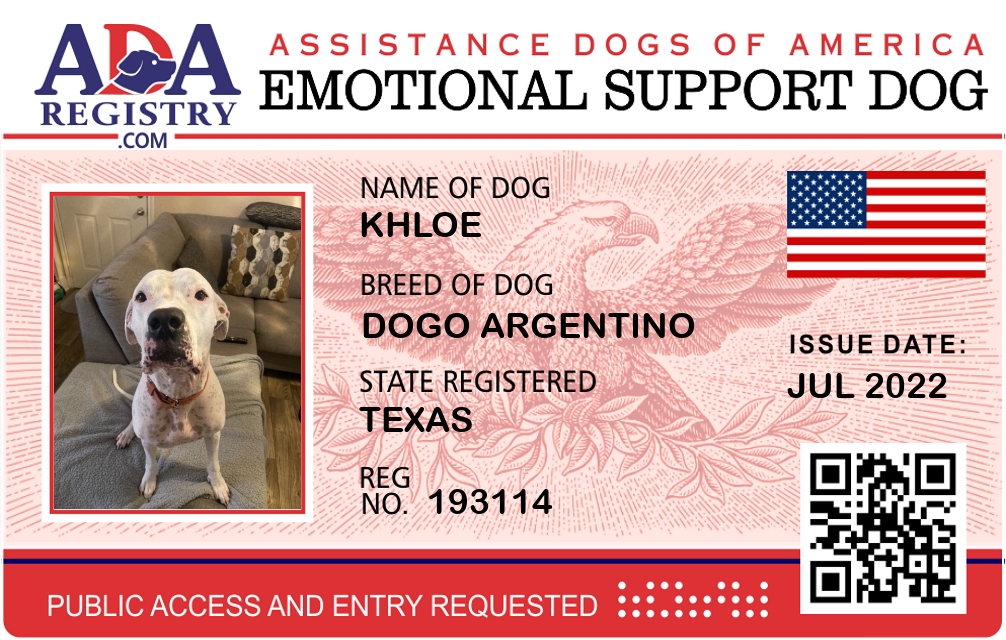 Emotional Support Dog Registration for Khloe